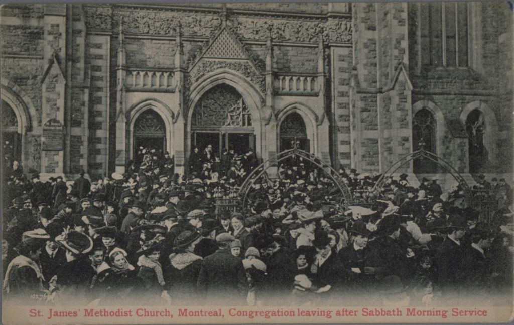 St. James' Methodist Church, Montreal, congregation leaving after Sabbath morning service