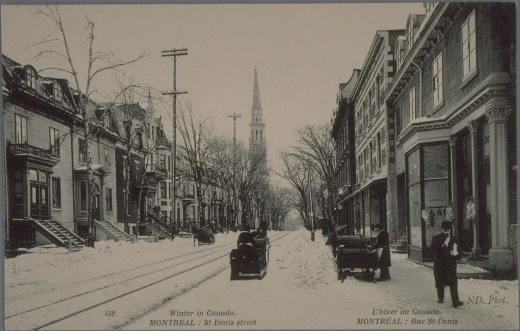 Winter in Canada. Montreal: St Denis street L'hiver au Canada. Montréal ; Rue St-Denis