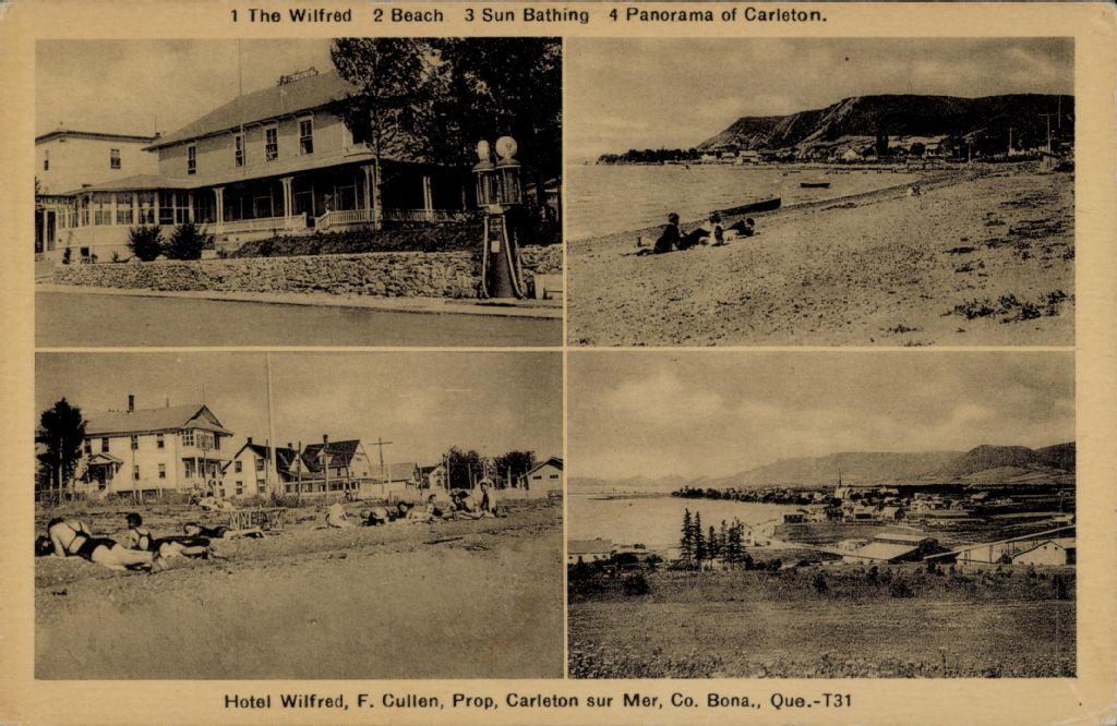 1 The Wilfred 2 Beach 3 Sun Bathing 4 Panorama of Carleton 1 Hôtel Wilfred 2 La Plage 3 Bain de Soleil 4 Vue panoramique de Carleton