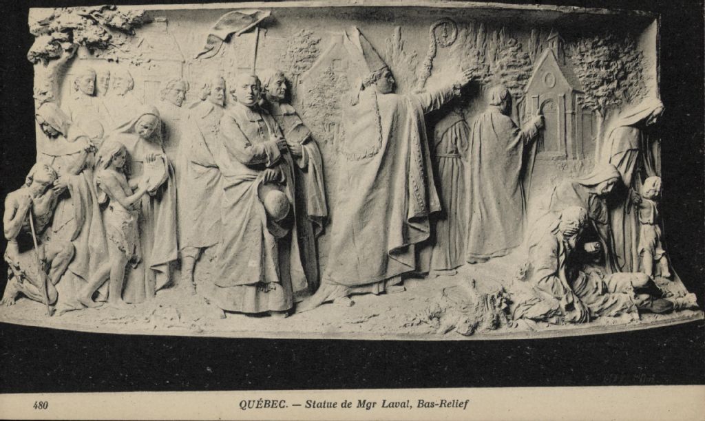 Québec. - Statue de Mgr Laval, bas-relief