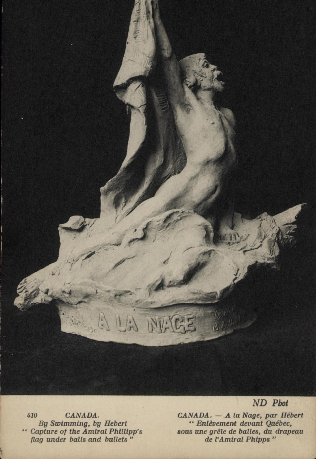 Canada. By swimming, by Hebert, "Capture of the Amiral Phillipp's flag under balls and bullets" = Canada. - À la nage, par Hébert, "Enlèvement devant Québec, sous une grêle de balles, du drapeau de l'amiral Phipps"