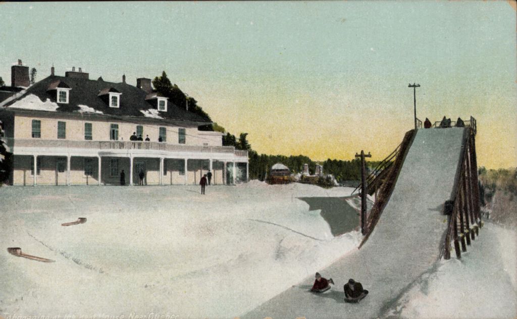 [Manoir Montmorency en hiver et enfants sur une glissoire]
