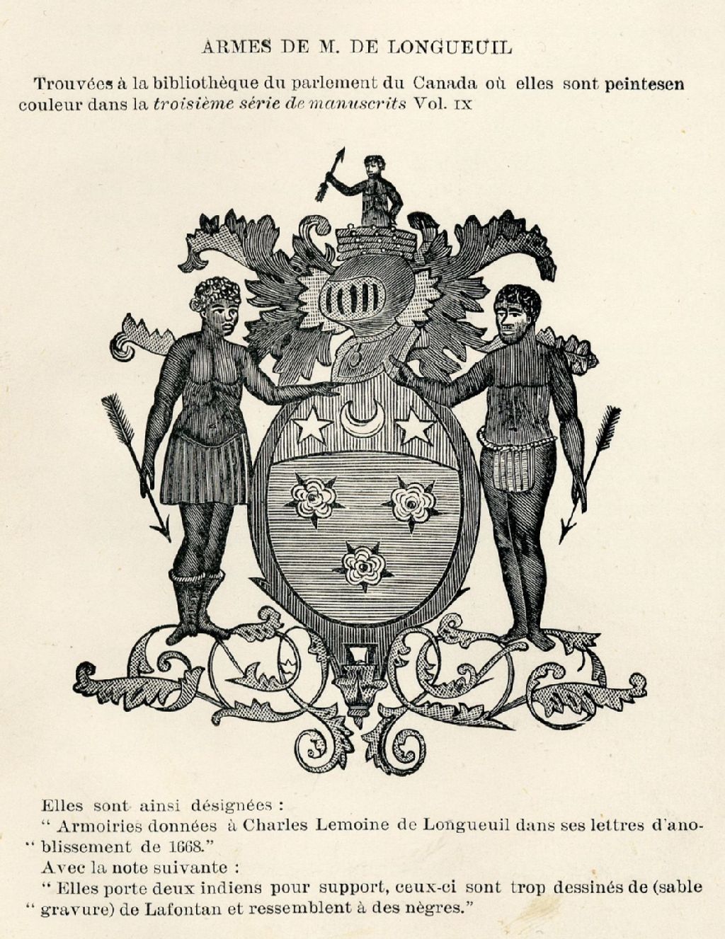 Armes de M. de Longueuil. Trouvées à la Bibliothèque du Parlement du Canada où elles sont peintesen [sic] couleur dans la troisième série de manuscrits Vol. IX