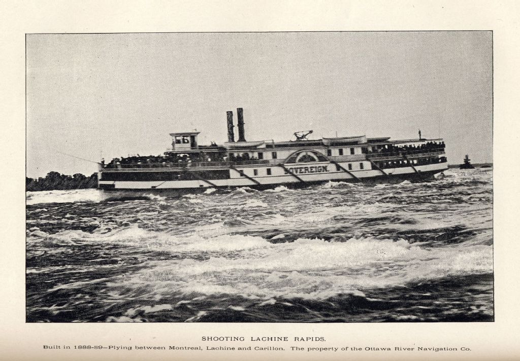 Shooting Lachine Rapids. Built in 1888-1889 - Plying between Montreal, Lachine and Carillon. The property of the Ottawa River Navigation Co