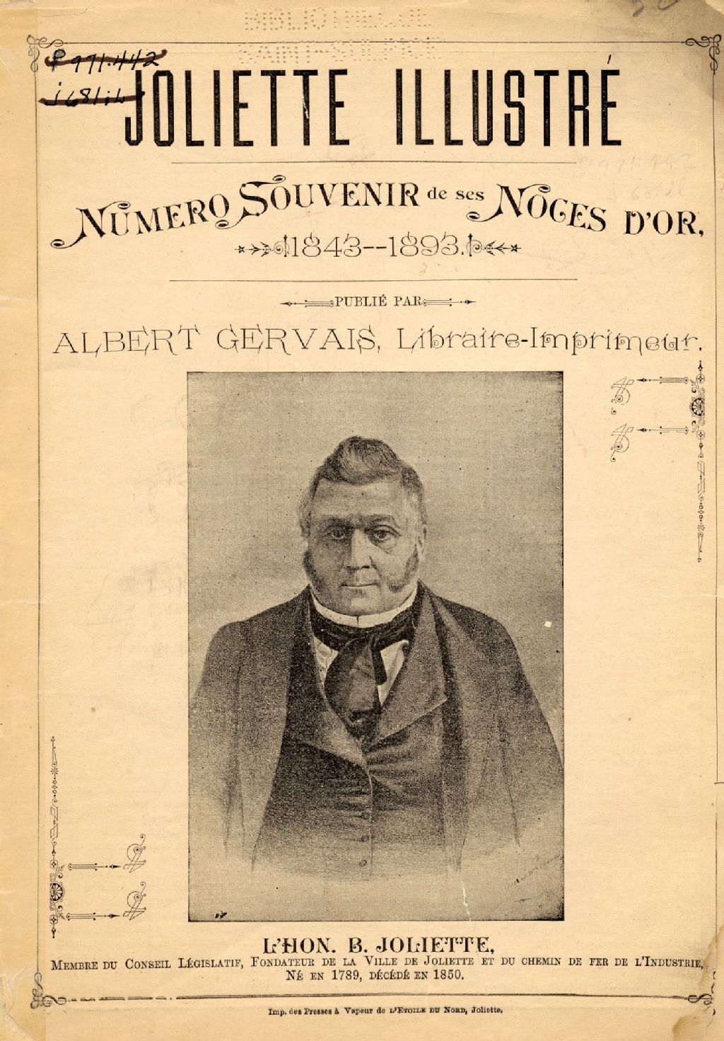L'Hon. B. Joliette, membre du conseil législatif, fondateur de la ville de Joliette et du chemin de fer de l'Industrie