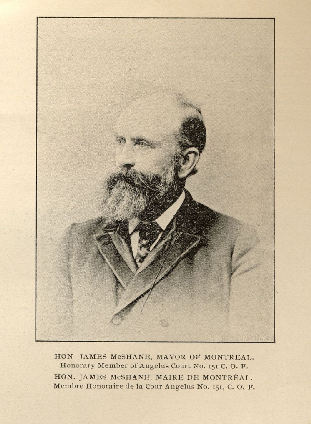 Hon. James McShane, Mayor of Montreal. Honorary Member of Angelus Court No. 151 C. O. F. = Hon. James McShane, maire de Montréal. Membre honoraire de la cour Angelus No. 151, C. O. F.