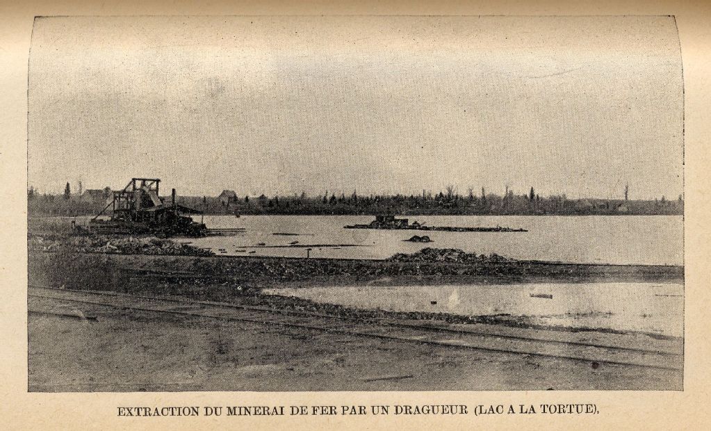 Extraction du minerai de fer par un dragueur (Lac à la Tortue)