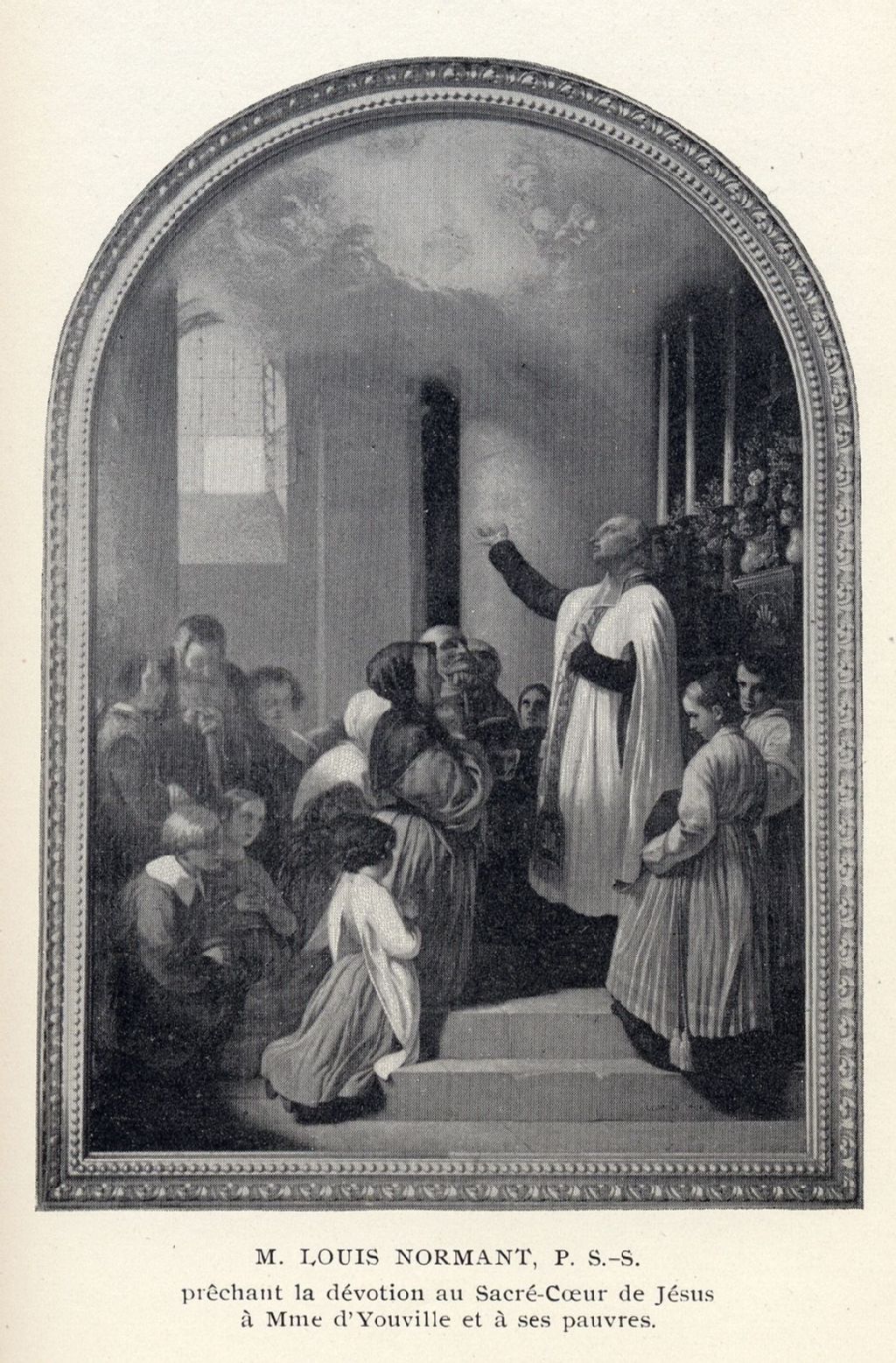 M. Louis Normant, P. S.-S. prêchant la dévotion au Sacré-Coeur de Jésus à Mme d'Youville et à ses pauvres