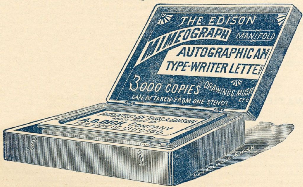 The Edison Mimeograph Patented by Thos. A. Edison, Made only by A. B. Dick Company /