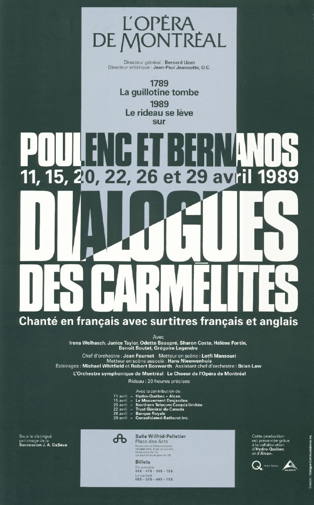 1789 la guillotine tombe, 1989 le rideau se lève sur Poulenc et Bernanos..., Dialogues des carmélites, chanté en français...