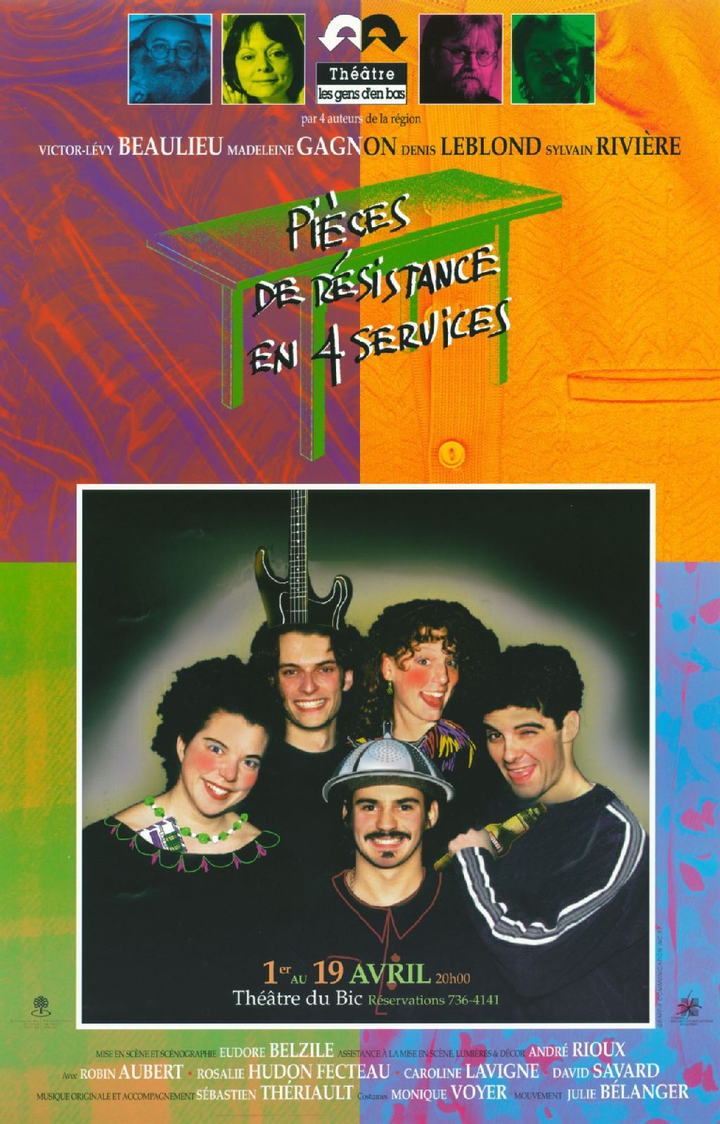 Pièces de résistance en 4 services, par 4 auteurs Victor-Lévy Beaulieu, Madeleine Gagnon, Denis Leblond, Sylvain Rivière, mise en scène... Eudore Belzile