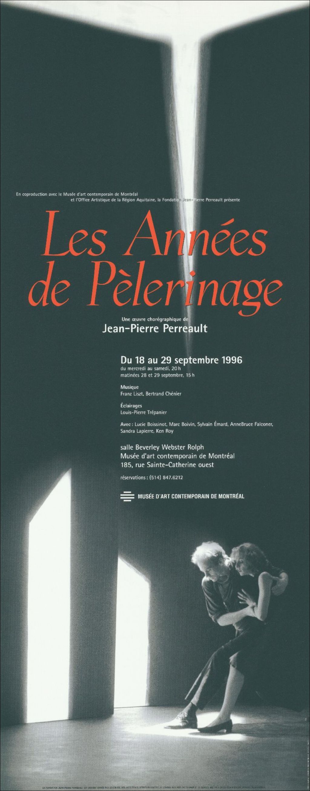 En coproduction avec le Musée d'art contemporain de Montréal et l'Office artistique de la région Aquitaine, la Fondation Jean-Pierre Perreault présente Les années de pèlerinage, une oeuvre chorégraphique de Jean-Pierre Perreault