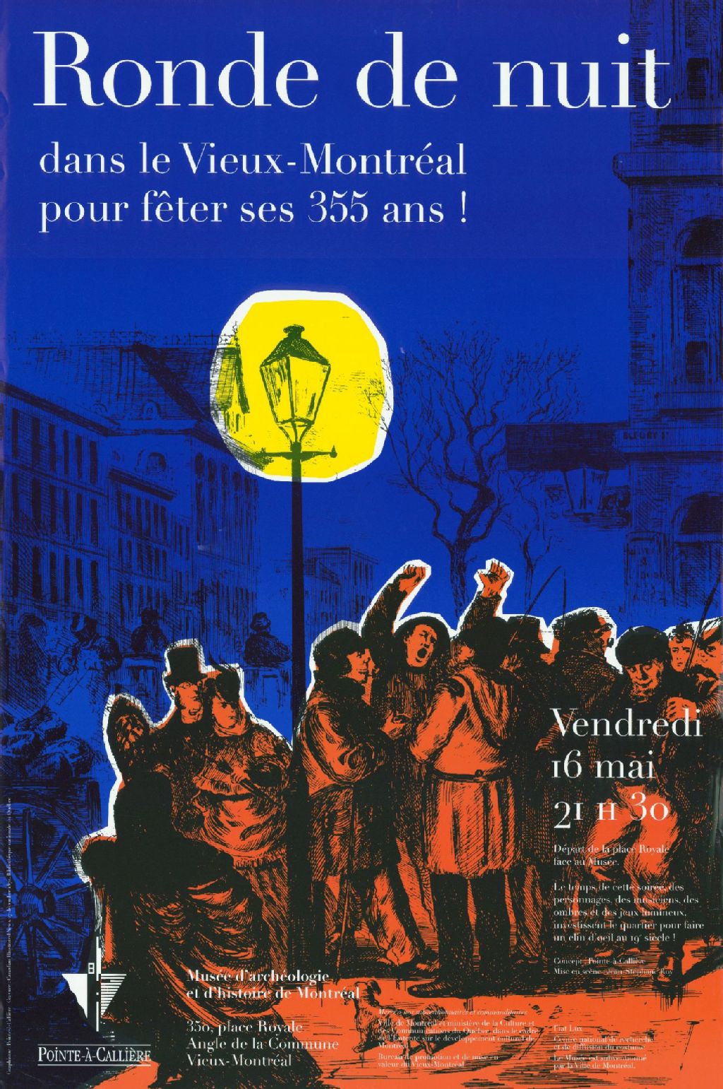 Ronde de nuit dans le Vieux-Montréal pour fêter ses 355 ans!... des personnages, des musiciens, des ombres et des jeux lumineux investissent le quartier pour faire un clin d'oeil au 19e siècle