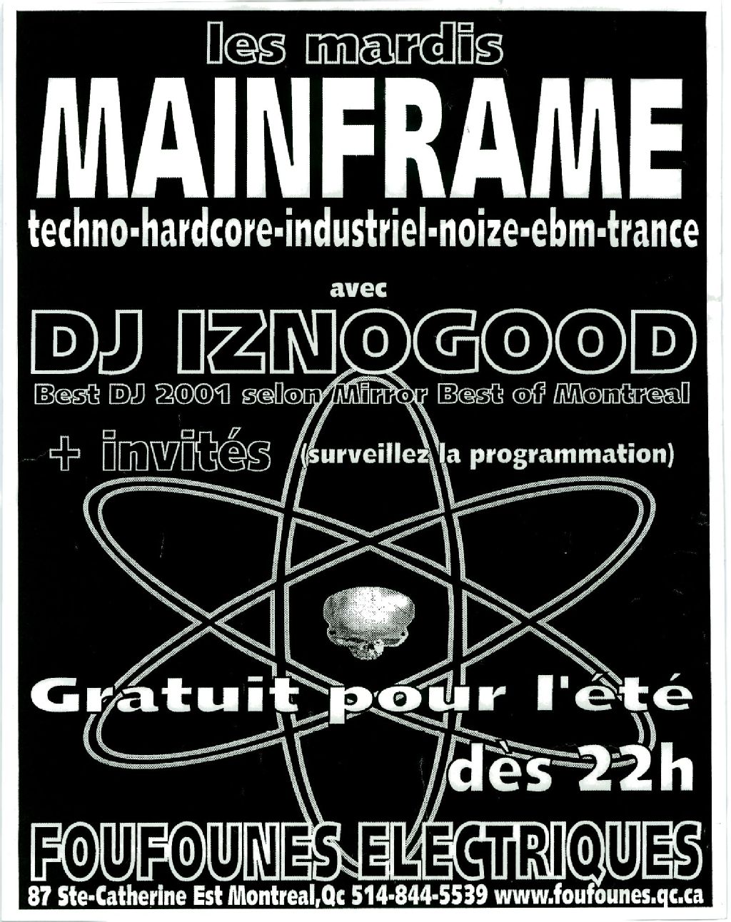 Les mardis Mainframe techno, hardcore, industriel, noize, ebm, trance avec dj Iznogood, best dj 2001... + invités...