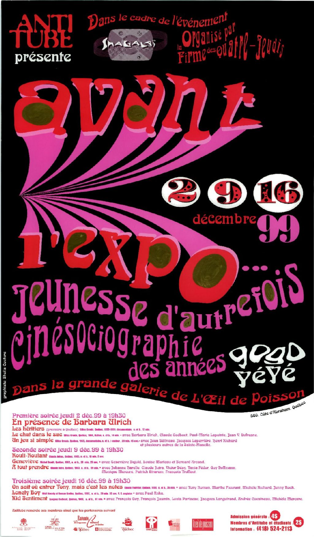 Antitube présente, dans le cadre de l'événement Shagalaï organisé par la Firme des quatre-jeudis, Avant l'expo-- jeunesse d'autrefois, cinésociographie des années gogo yéyé ...