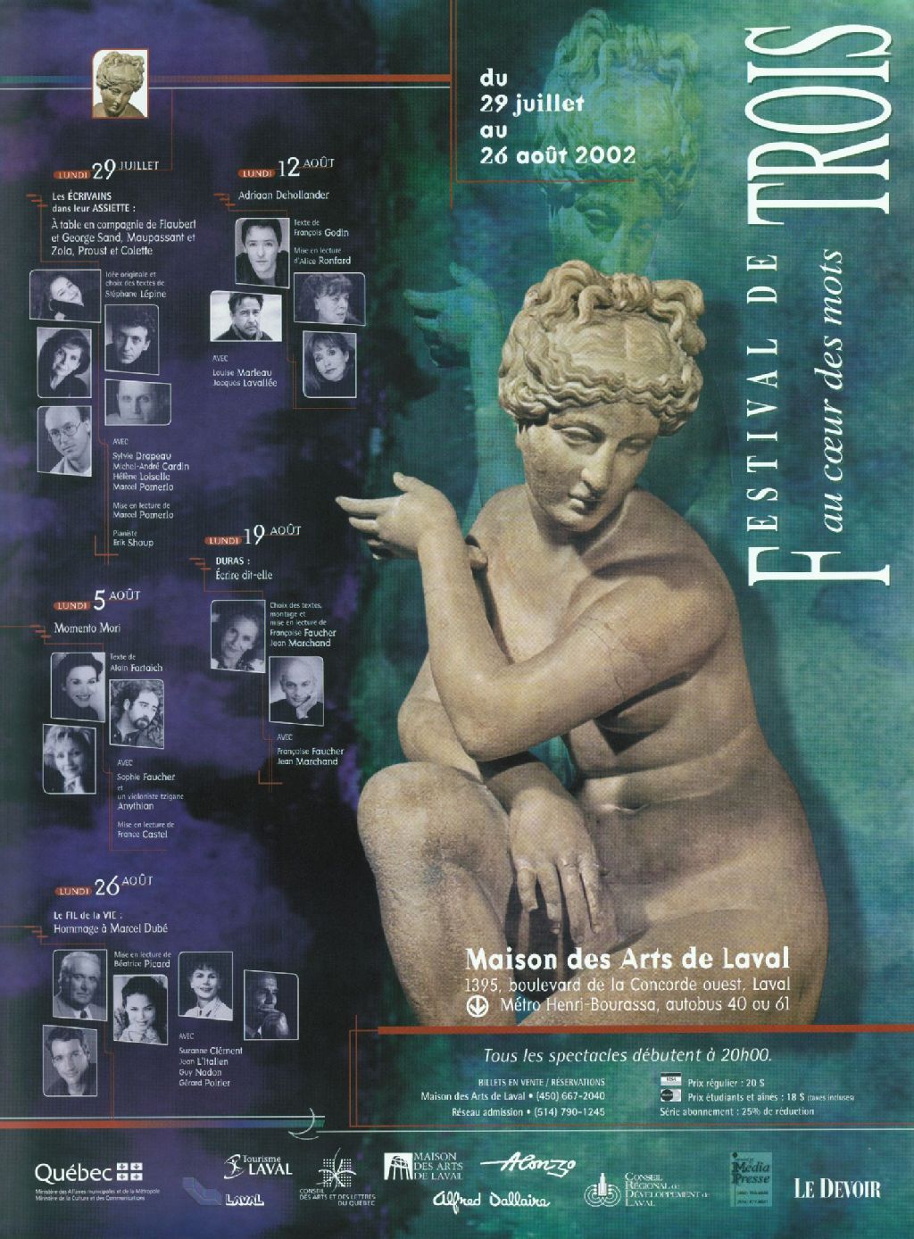 Festival de Trois, Au coeur des mots Les écrivains dans leur assiette... Momento Mori... Le fil de la vie : hommage à Marcel Dubé...