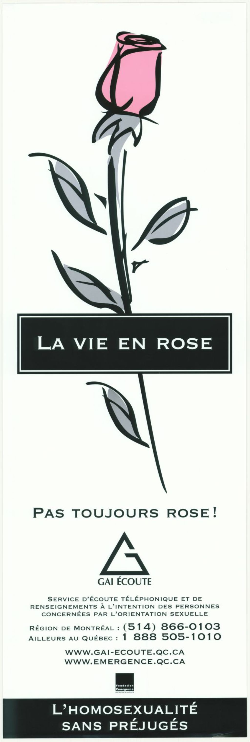 La vie en rose, pas toujours rose! l'homosexualité sans préjugés : service d'écoute téléphonique et de renseignements...