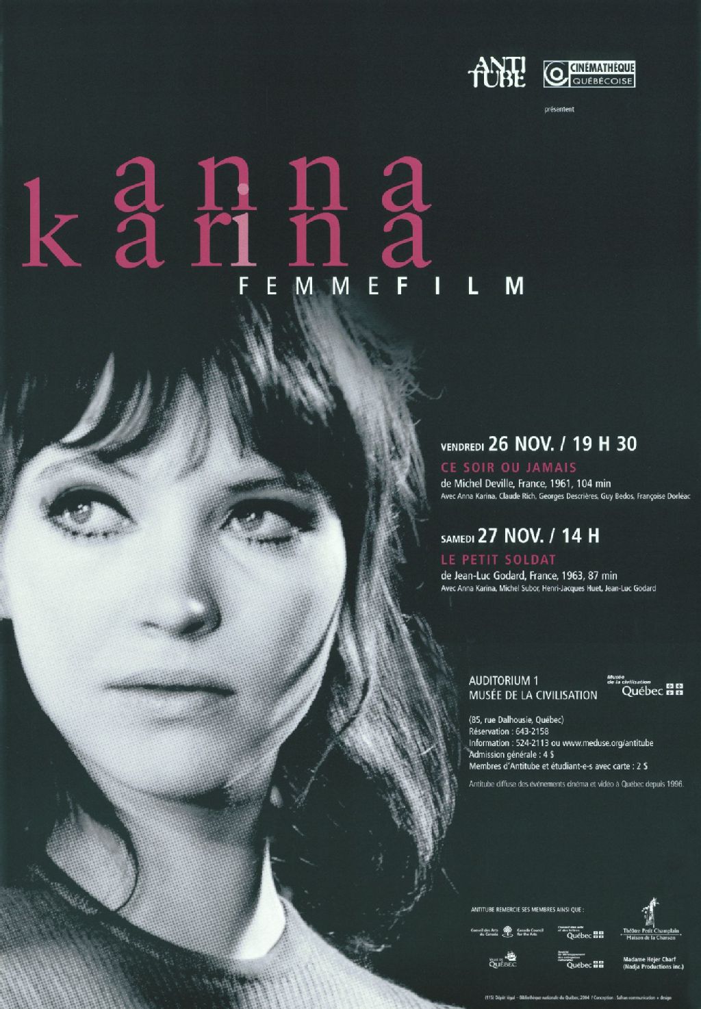 Antitube et la Cinémathèque québécoise présentent Anna Karina, femme film Ce soir ou jamais... Le petit soldat...