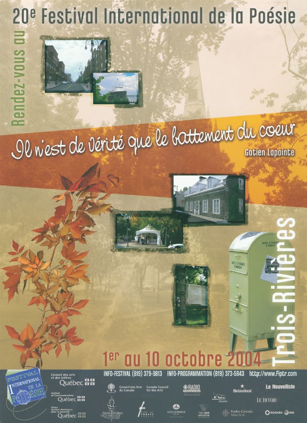 Rendez-vous au 20e Festival international de la poésie "Il n'est de vérité que le battement du coeur", Gatien Lapointe