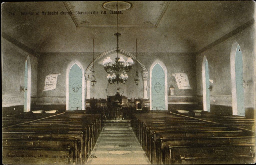 Interior of Methodist church, Clarenceville P.Q., Canada