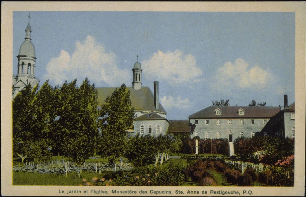 Le jardin et l'église, Monastère des capucins, Ste. Anne de Restigouche, P.Q