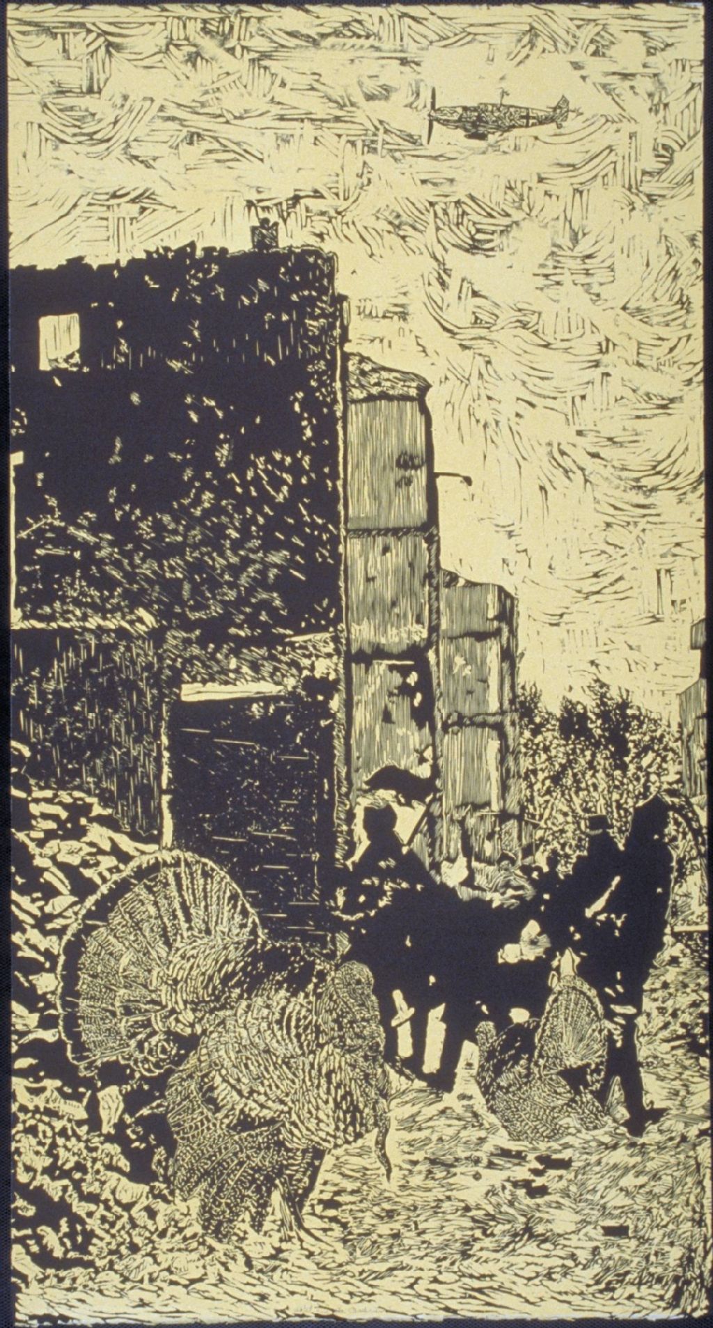 1 estampe : linogravure, bois gravé ; 122 x 65 cm