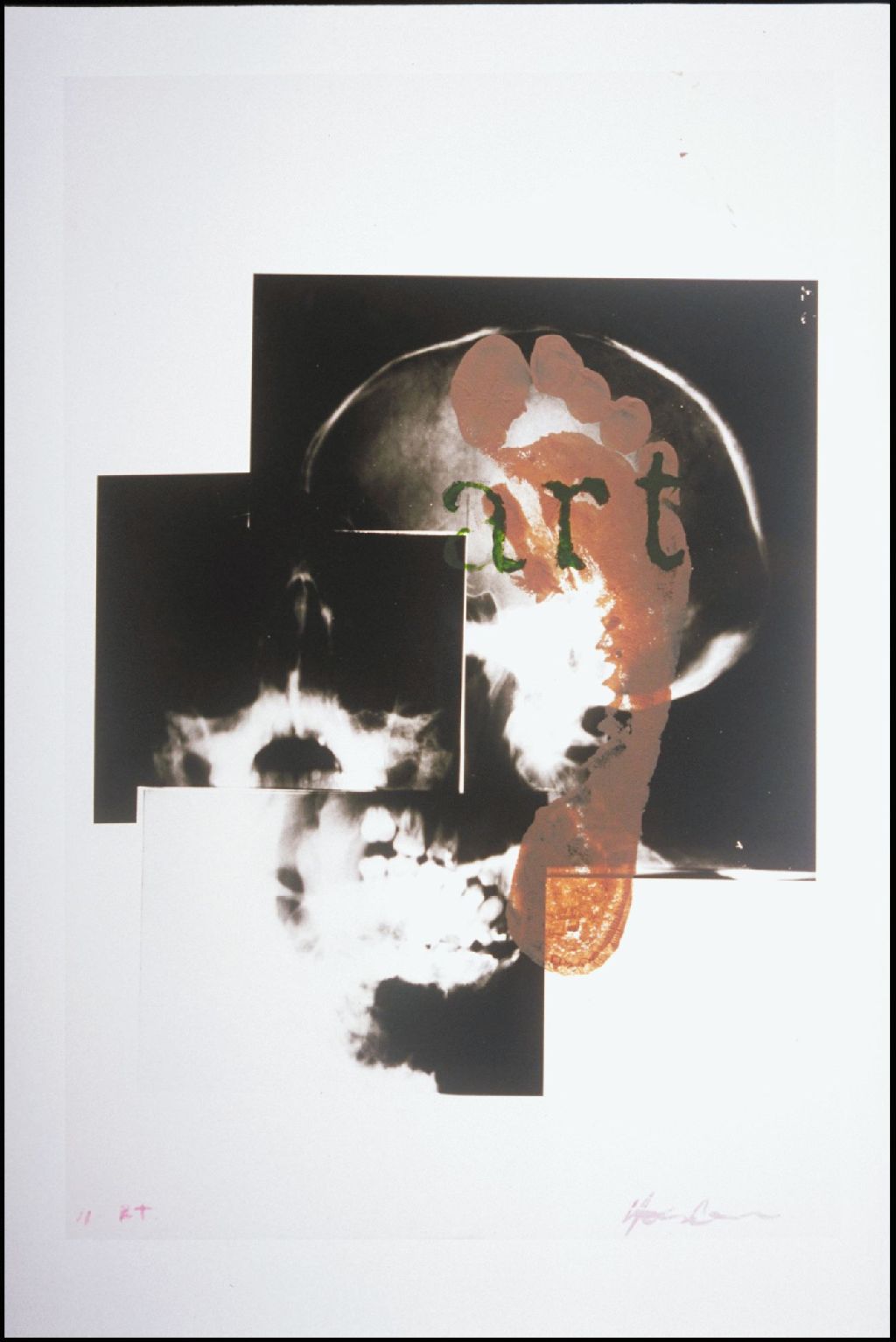 1 oeuvre d'art : reproduction de radiographie sur acétate, acrylique ; 46 x 31 cm