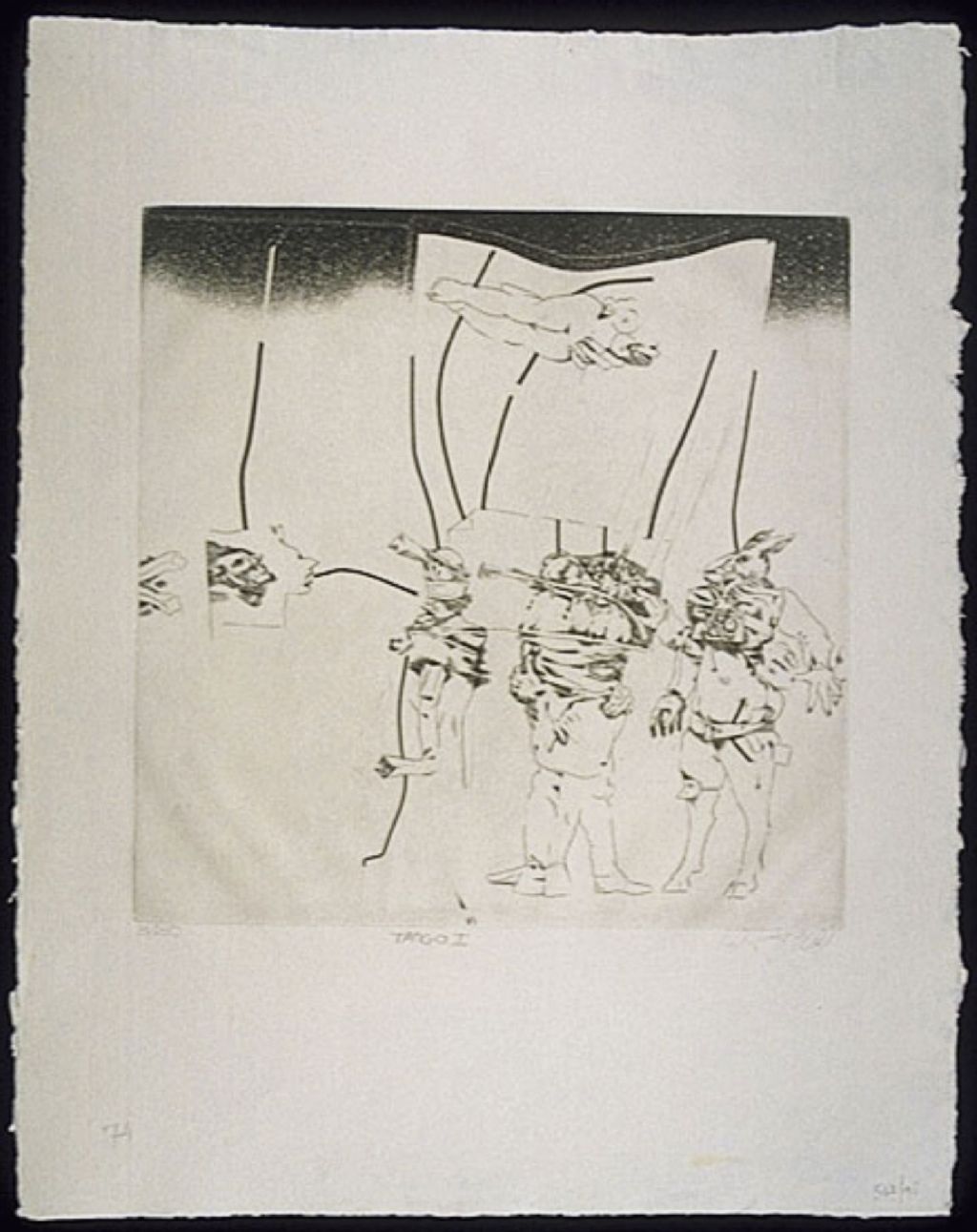 1 estampe : eau-forte, aquatinte, burin, pointe-sèche, sur japon collé ; 66 x 51 cm