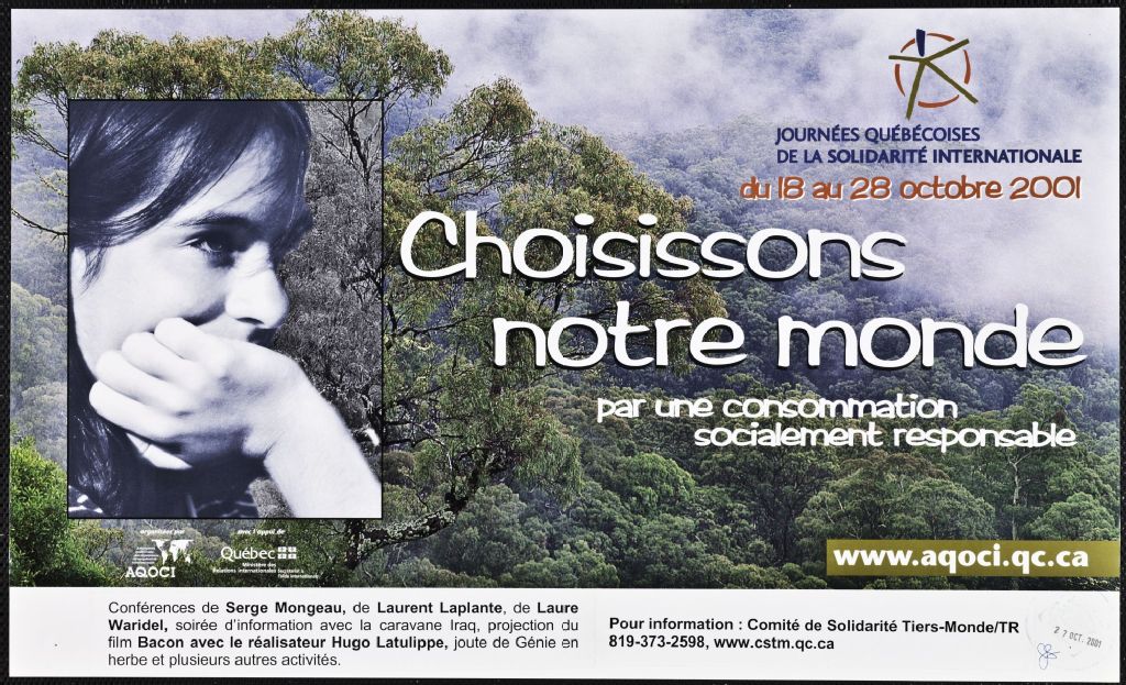 Choisissons notre monde par une consommation socialement responsable Journées québécoises de la solidarité internationale : conférences... soirée d'information... projection du film...