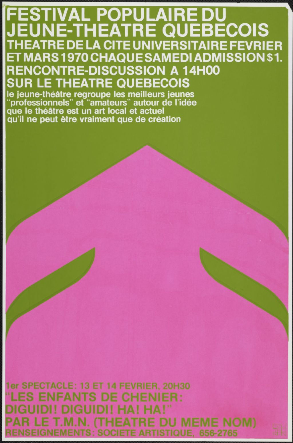 Festival populaire du jeune-théâtre québécois rencontre-discussion... sur le théâtre québécois... 1er spectacle... Les enfants de Chénier: Diguidi! Diguidi! Ha! Ha! par le T.M.N. (Théâtre du même nom)...