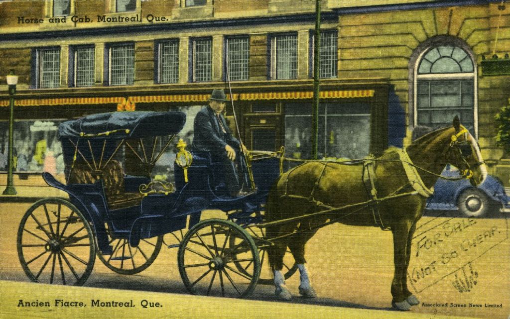 Horse and Cab, Montreal, Que. Ancien Fiacre, Montreal, Que.