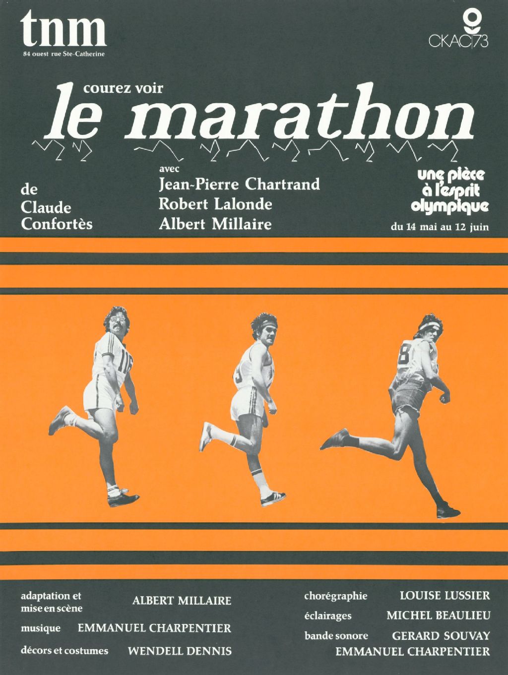 Courez voir le marathon, une pièce à l'esprit olympique, de Claude Confortès, adaptation et mise en scène Albert Millaire