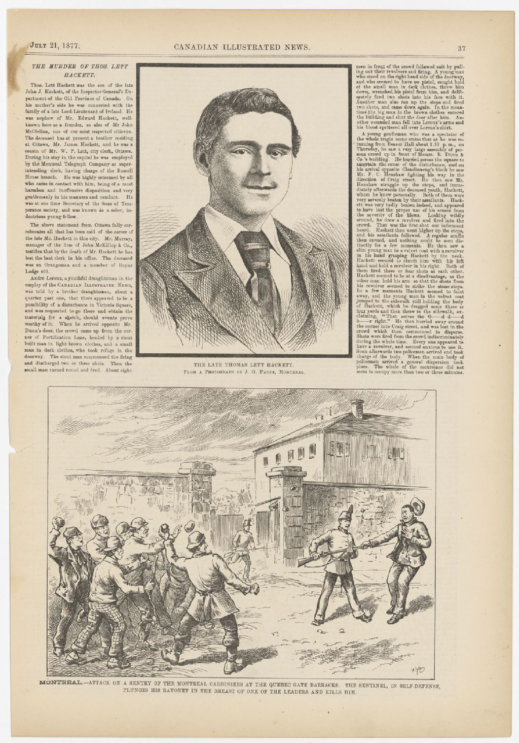 The late Thomas Lett Hackett Attack on a sentry of the Montreal carbiniers at the Quebec gate barracks