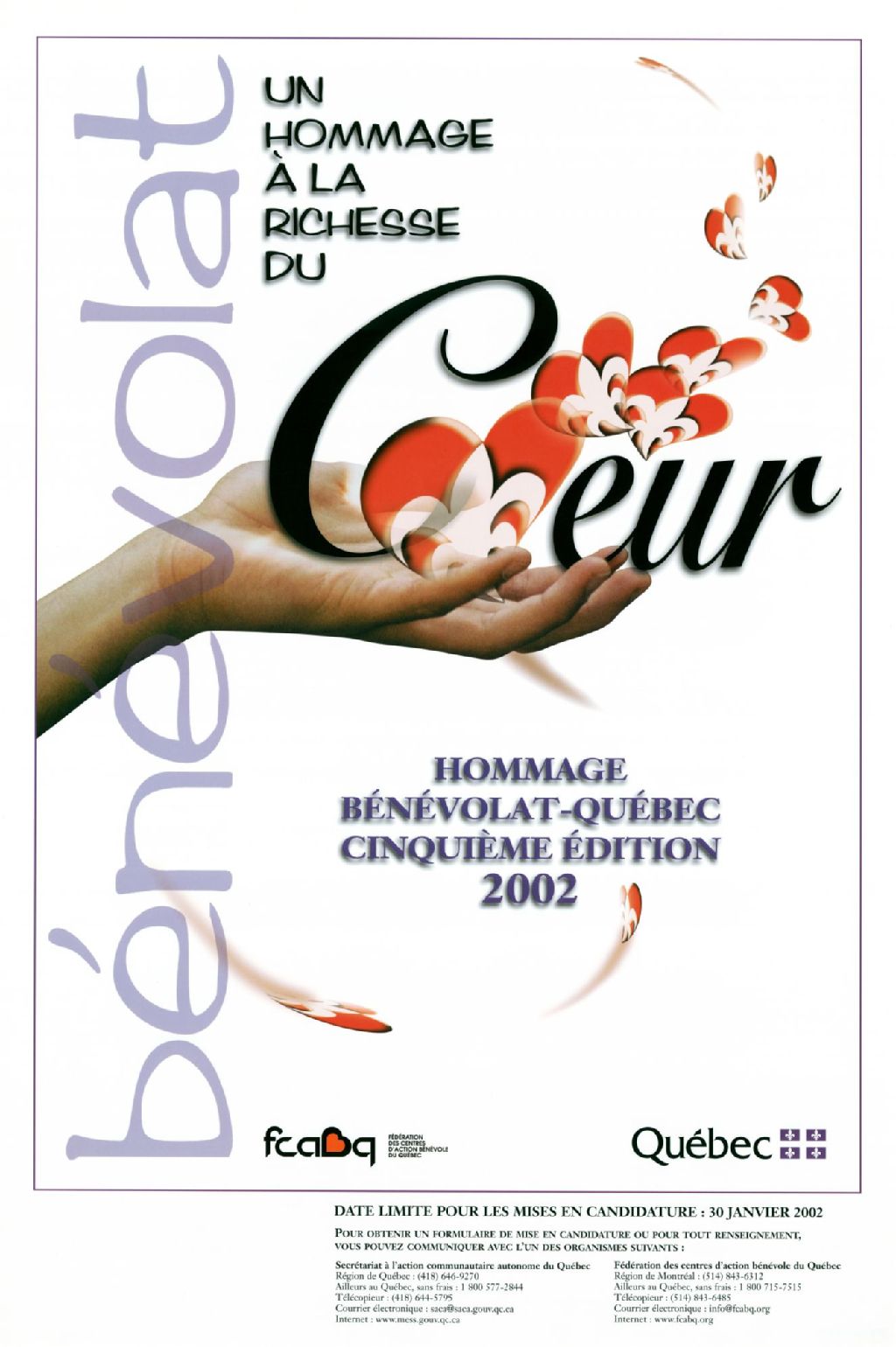 Bénévolat, un hommage à la richesse du coeur Hommage Bénévolat-Québec, cinquième édition : date limite pour les mises en candidature...