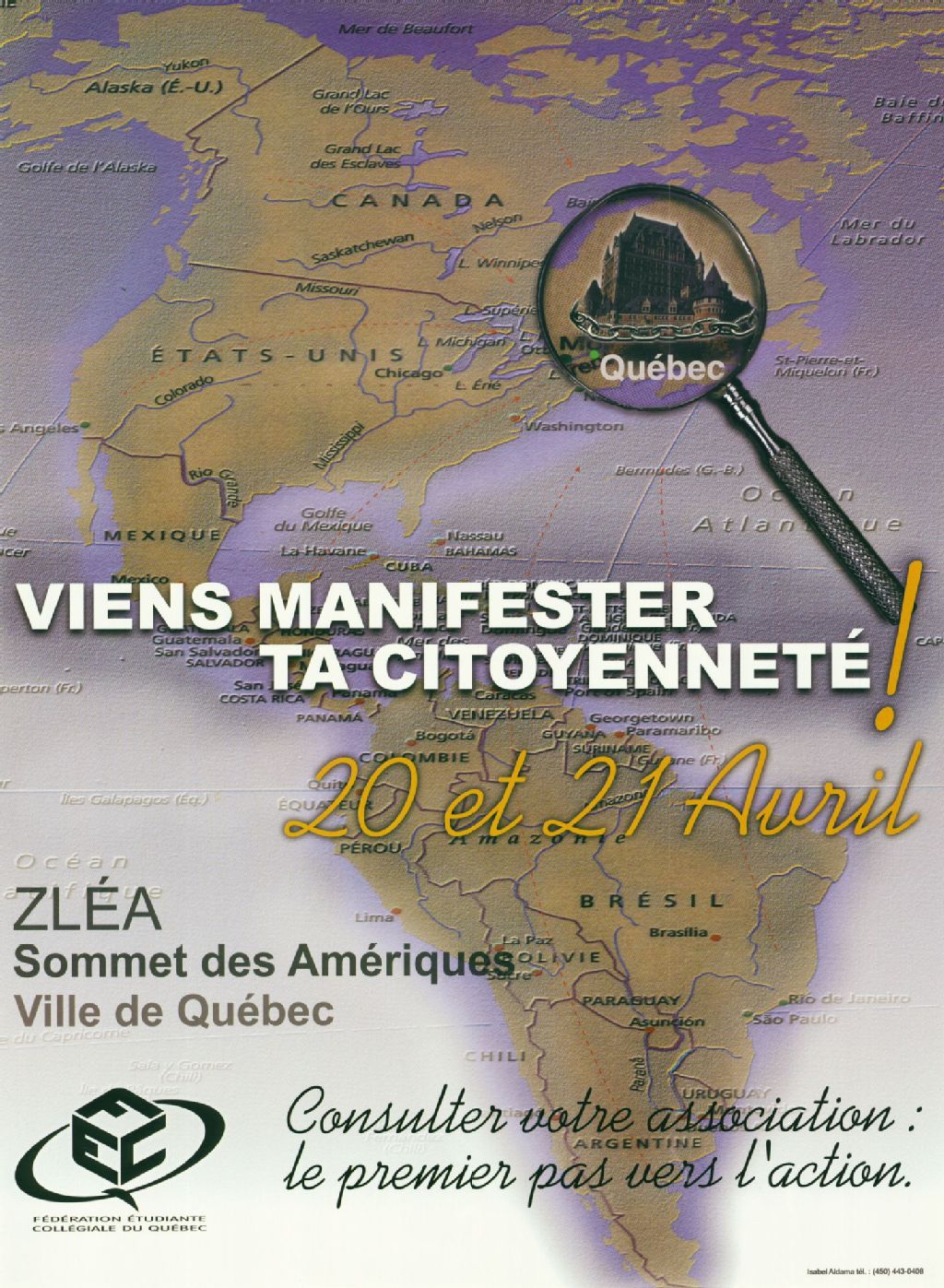 Viens manifester ta citoyenneté!... ZLÉA, Sommet des Amériques, ville de Québec