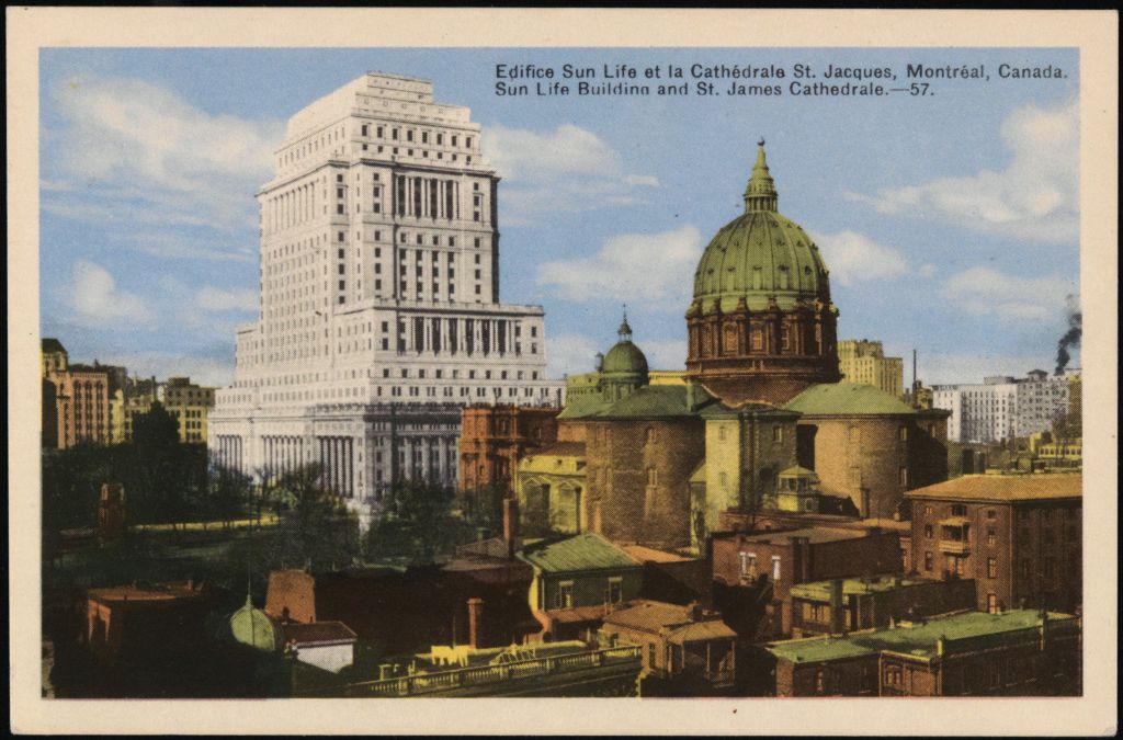 Édifice Sun Life et la cathédrale St. Jacques, Montréal, Canada = Sun Life Building and St. James Cathedrale, Montreal, Canada