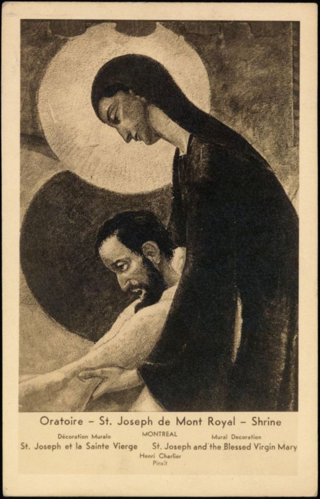 Oratoire St. Joseph de Mont-Royal, décoration murale, St. Joseph et la Sainte Vierge... St. Joseph de Mont-Royal Shrine, mural decoration, St. Joseph and the blessed Virgin...