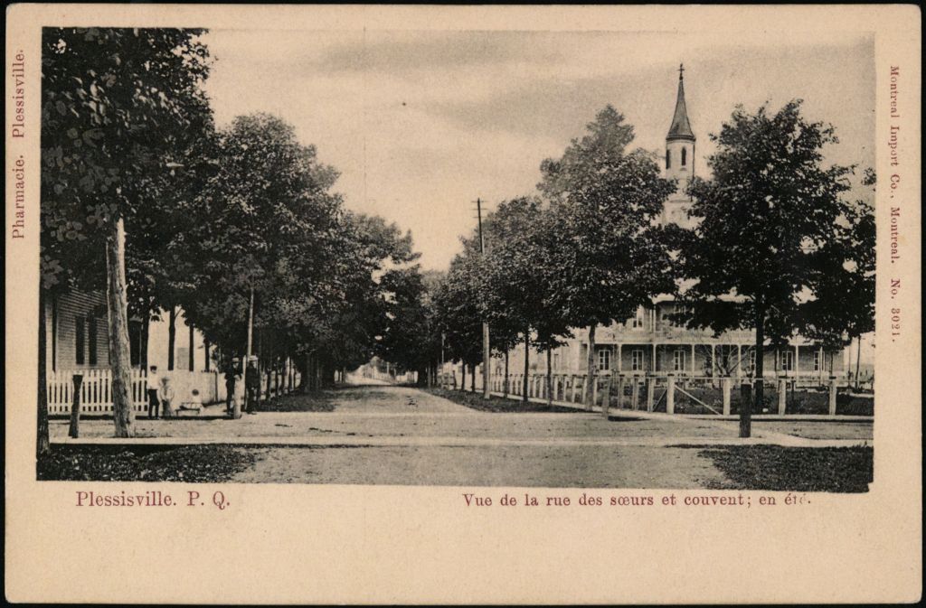 Plessisville, P.Q., vue de la rue des soeurs et couvent; en été