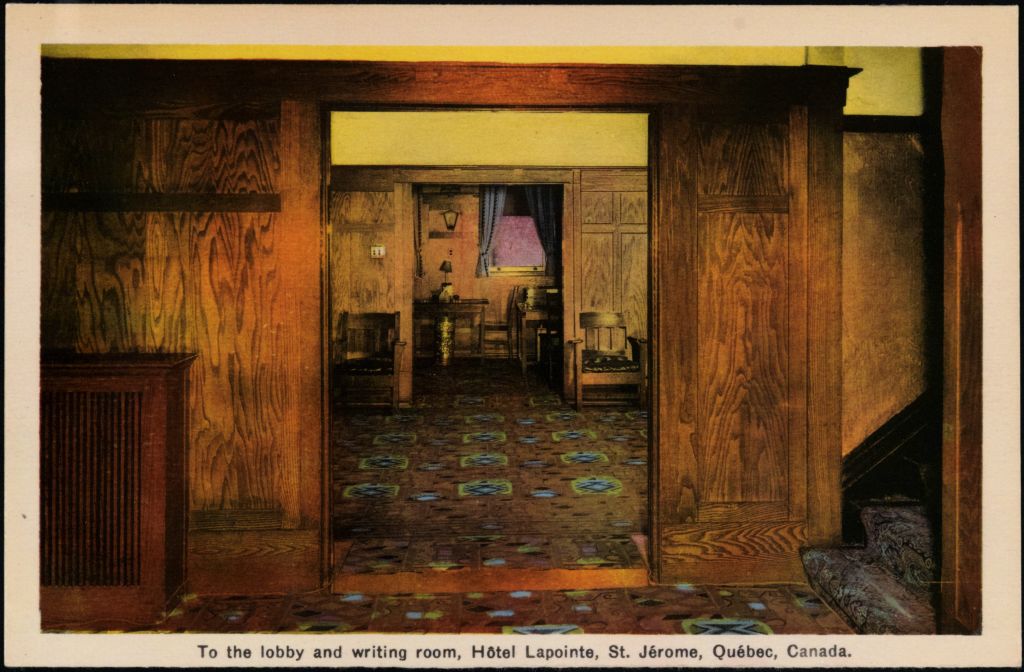 To the lobby and writing room, Hôtel Lapointe, St. Jérome, Québec, Canada