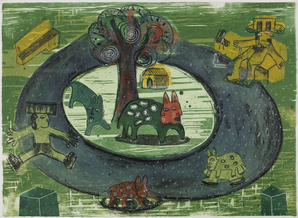 1 estampe : lithographie, bois gravé, rehaussé ; 57 x 78 cm