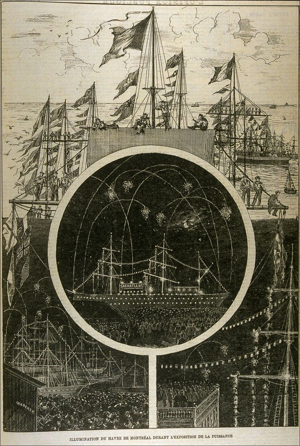 Illumination du havre de Montréal durant l'exposition de la puissance