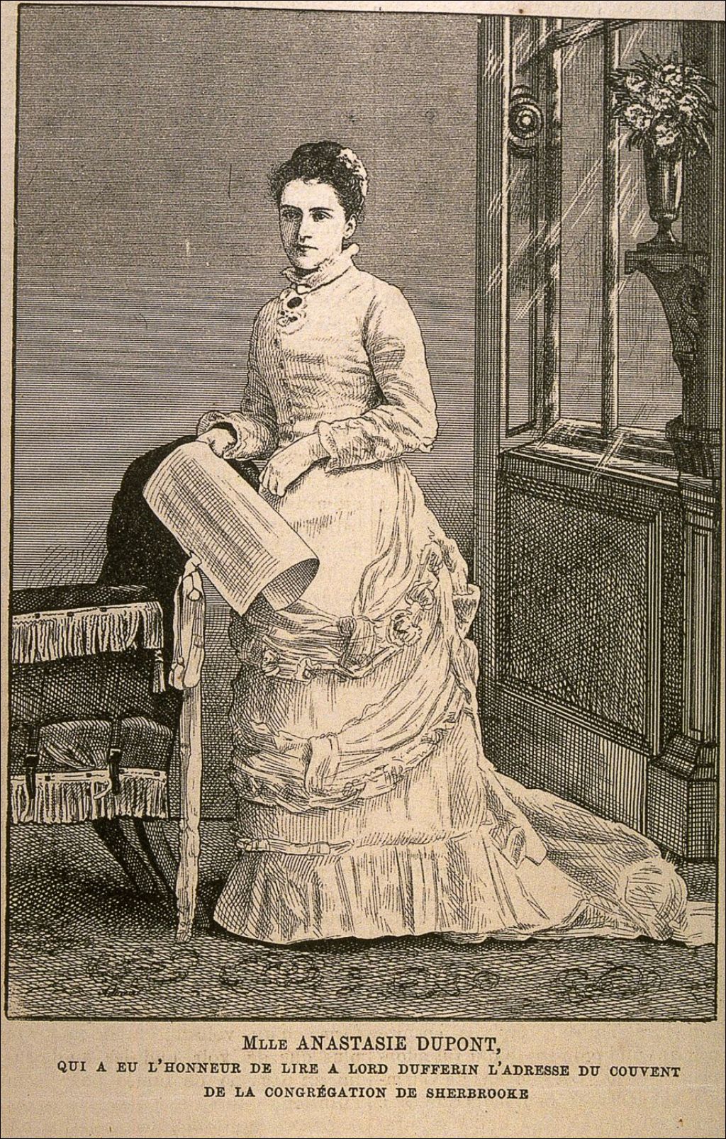 Mlle Anastasie Dupont, qui a eu l'honneur de lire à Lord Dufferin l'adresse du couvent de la congrégation de Sherbrooke