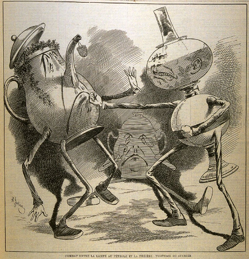 Combat entre la lampe au pétrole et la théière tristesse du sucrier /