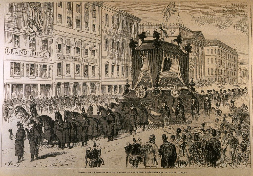 Montréal - Les funérailles de Sir Geo. E. Cartier - La procession défilant sur la rue St. Jacques