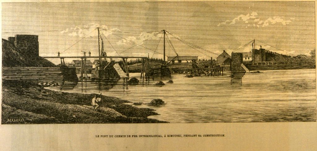 Le pont du chemin de fer intercolonial, à Rimouski, pendant sa construction