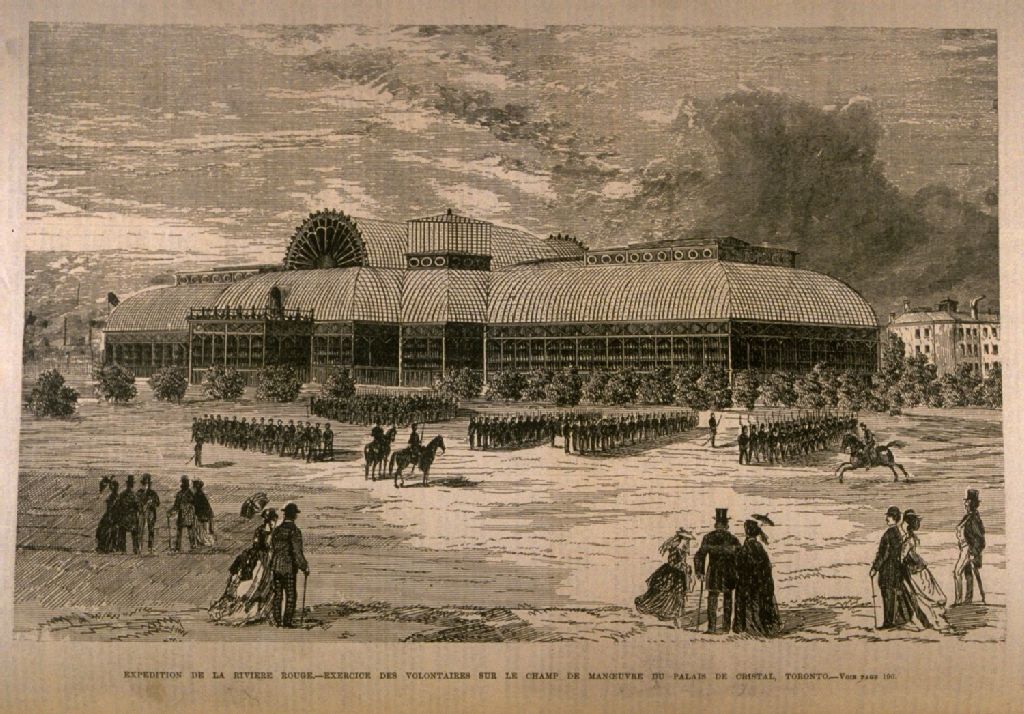 Expédition de la Rivière Rouge exercice des volontaires sur le champ de manoeuvre du palais de Cristal, Toronto