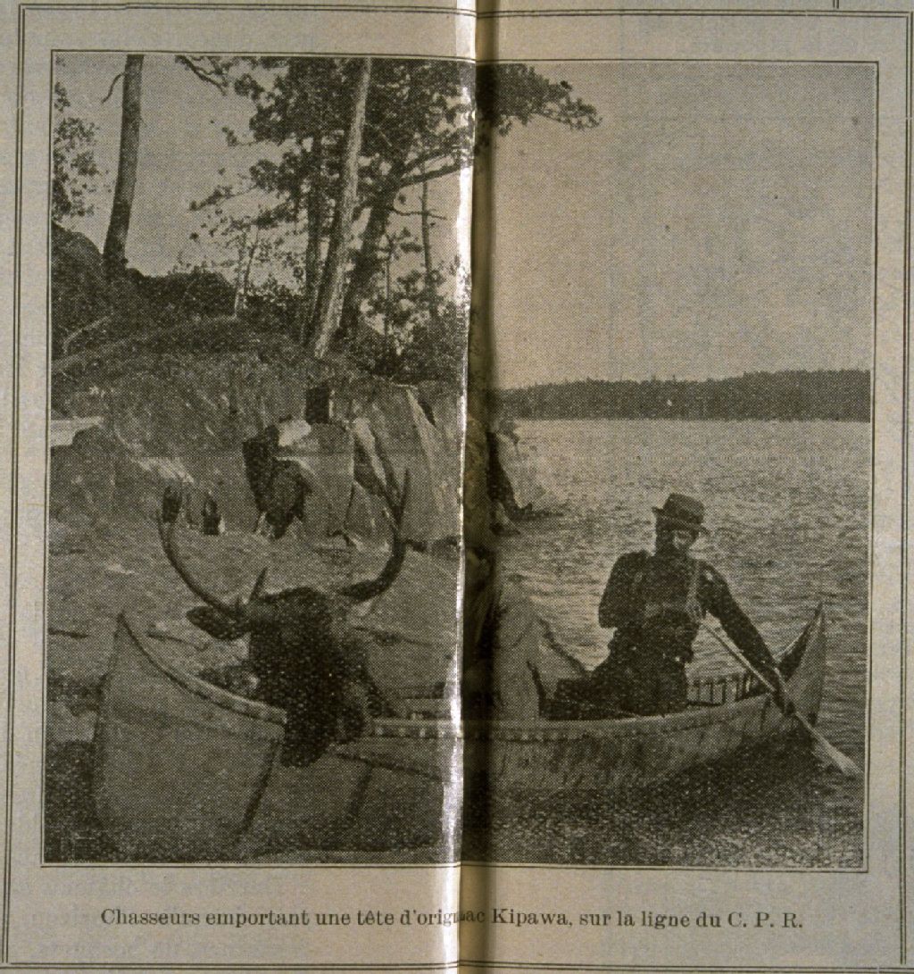De la chasse et de la pêche dans les provinces de Québec et d'Ontario chasseurs emportant une tête d'orignal au lac Kipawa