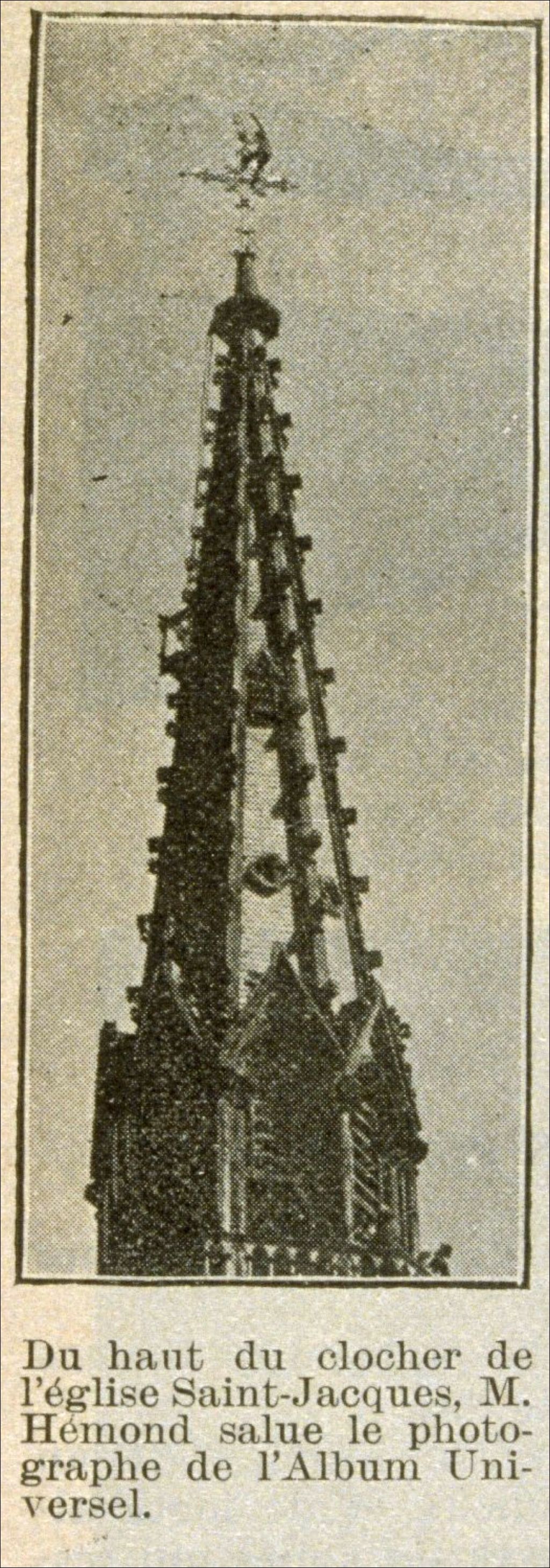 Les métiers dangeureux dans les villes du haut du clocher de l'église Saint-Jacques M. Hémond salue le photographe de l'Album universel