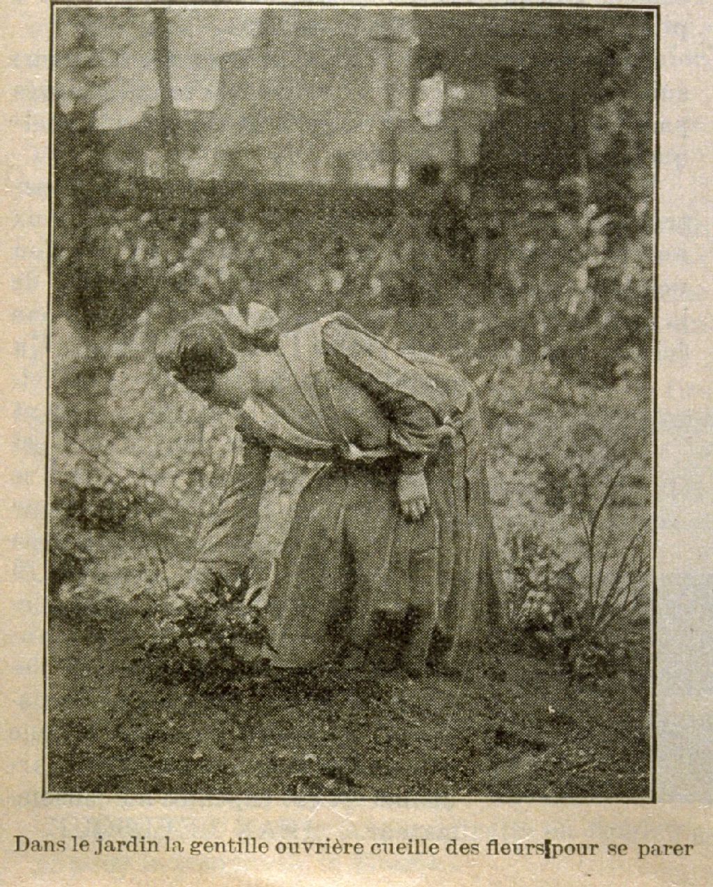 L'ouvrière montréalaise à l'atelier et chez elle dans le jardin la gentille ouvrière cueille des fleurs pour se parer