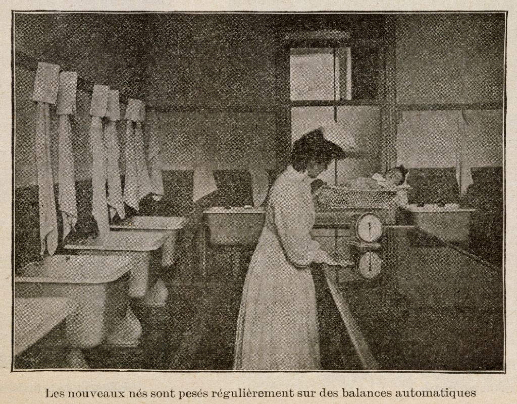La crèche des Soeurs de la Miséricorde les nouveau-nés sont pesés régulièrement sur des balances automatiques